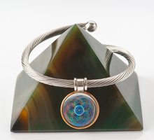 Descripción:Pulsera en acero. Doble holograma al láser con nanocristales en su interior.